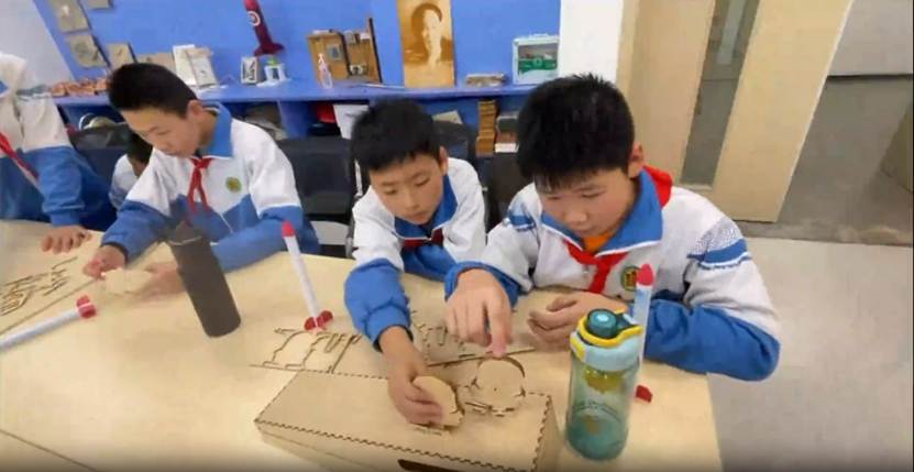 午后,“科技小先生”们转场天津师范大学,开启人文之旅。漫步校园:学术寓意浓厚的钢笔尖雕塑、藏书超百万册的图书馆、充满青春活力的田径场,这些让大家对“大学”有了具象认知——这里不仅是知识的殿堂,更是承载“为梦想奋斗”的地方。在科学教育中心,“科技小先生”们专注投入实践创作环节:
