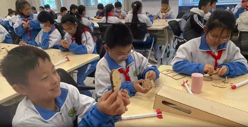 1.自走玩具。有人反复调整木板卡扣,有人琢磨玩具可行动原理,有人为“玩具走不远”皱着眉思考解决方案。当看到自己组装的玩具成功“行走”时,孩子们眼中闪烁的不仅是成就感,更有对“用科技解决问题”的坚定信念。