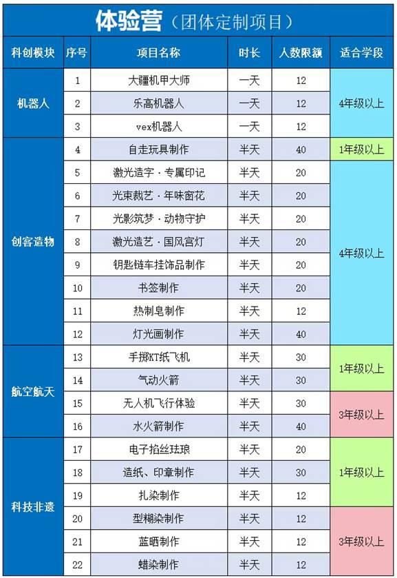 四大科创模块 22个体验项目任选